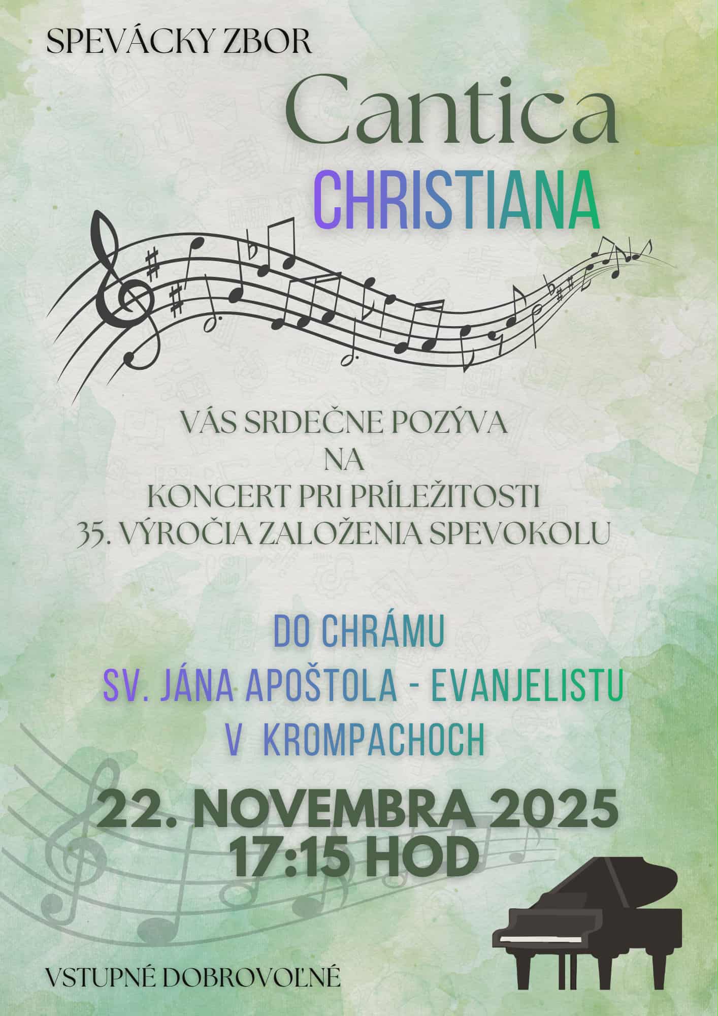Pozvánka na koncert farského chrámového zboru Cantica Christiana (22. 11. 2025)